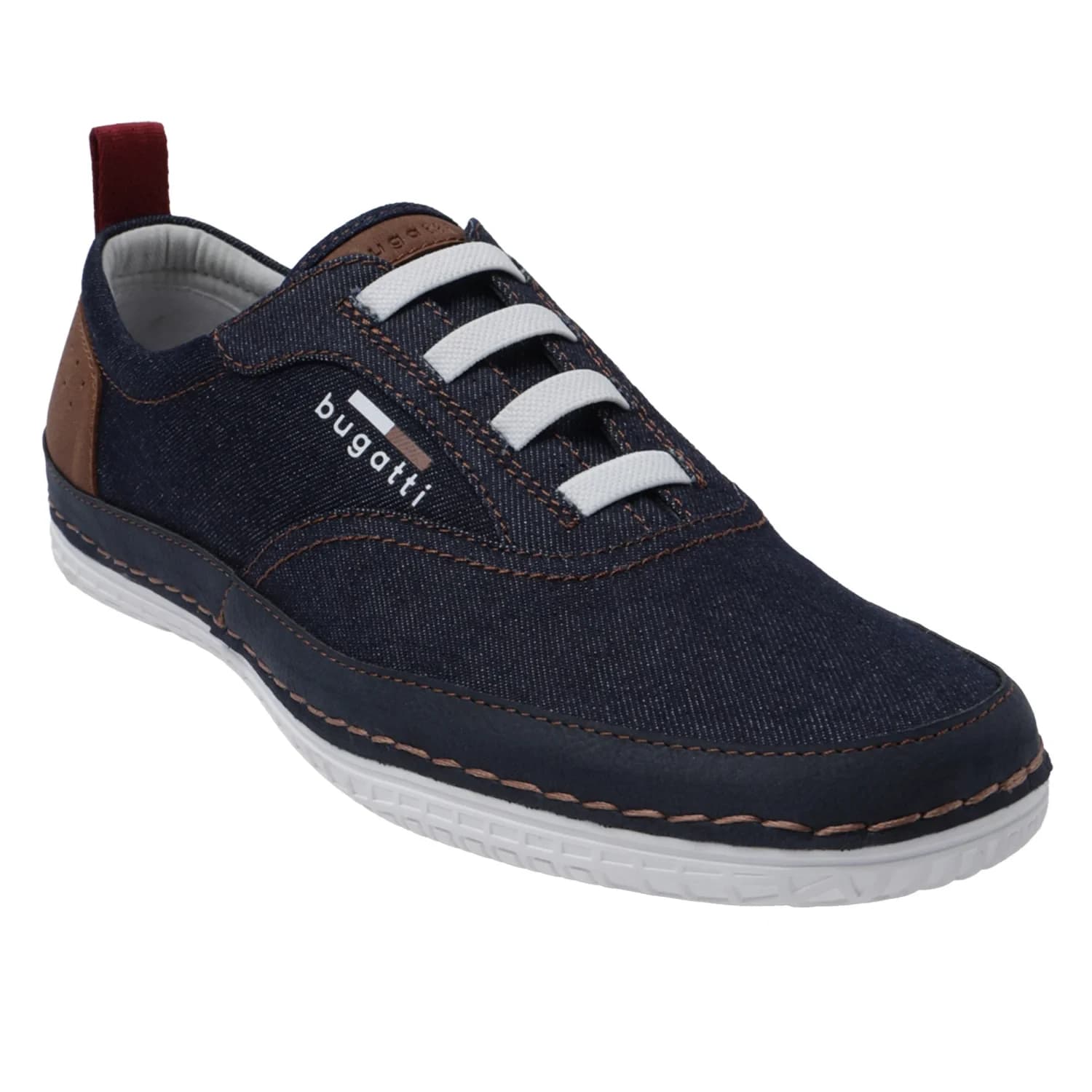 A bold proclamation of fashion and conscience. bugatti Bimini dark blue sneakers. Made from vegan materials. The cognac leather patch on the heel counter adds a touch of class to the overall charm.