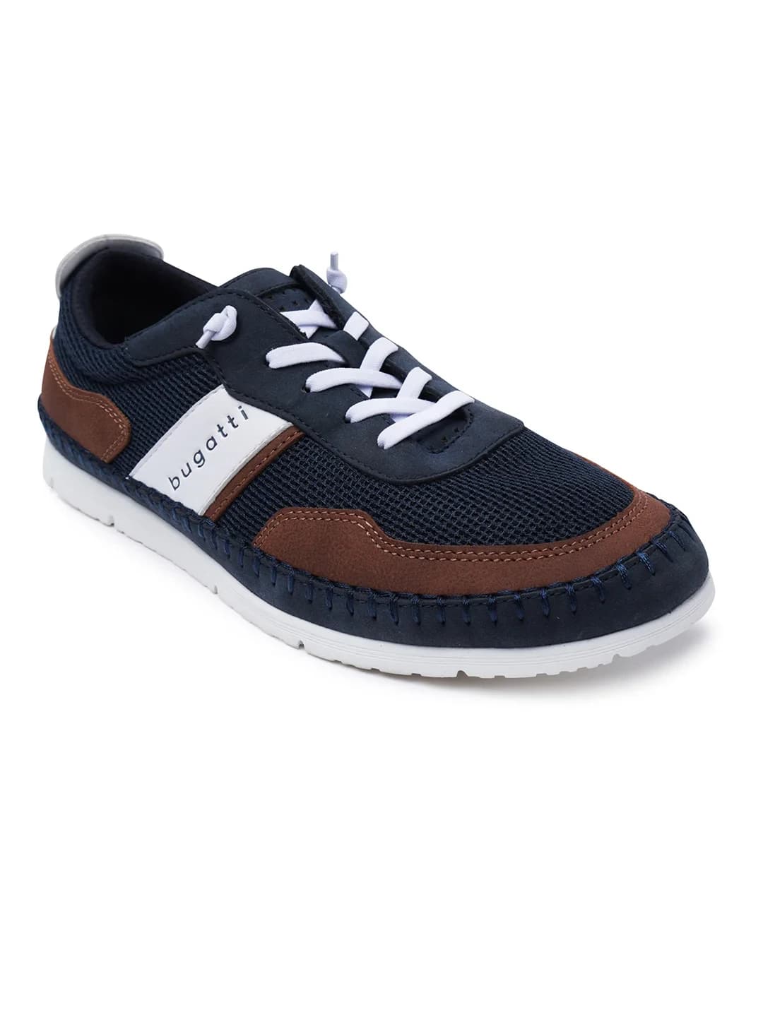 Expertly crafted for on-the-move practicality and everyday style. bugatti Clipperton dark blue & cognac sneakers. Features Soft Fit and Elastic Lace functionality for unparalleled comfort and ease.
