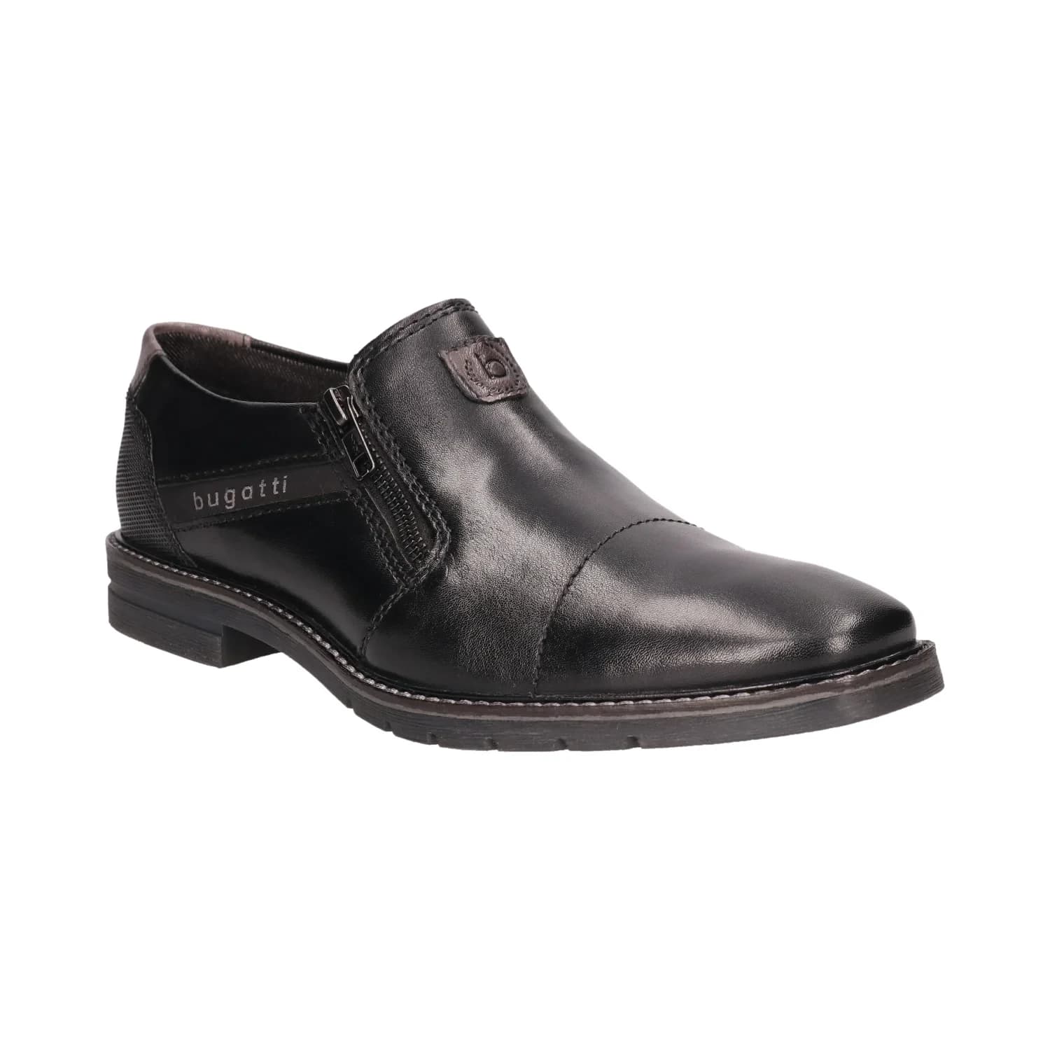 Innately classy and suave. bugatti Merlo Revo black derbies. With Care Impregnated leather, Genial Insole, TR outsoles, and stylish zip detail, these shoes are expertly crafted and built to impress.