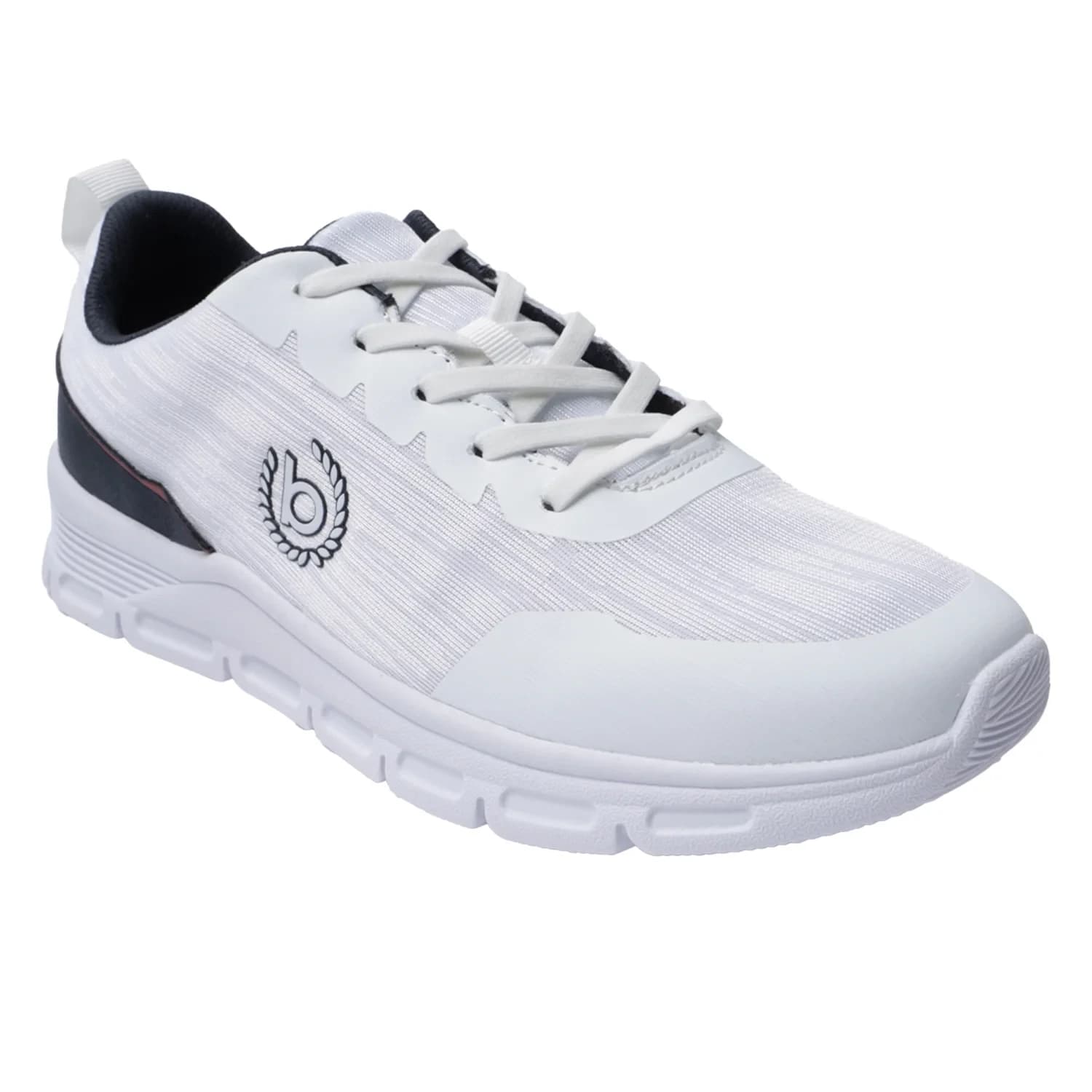 Innately classy and undeniably fun. bugatti Nexon blue mid-top sneakers. Textile uppers, round-toe design, and the bugatti icon detail on the sides lend this pair a clean, sophisticated style.