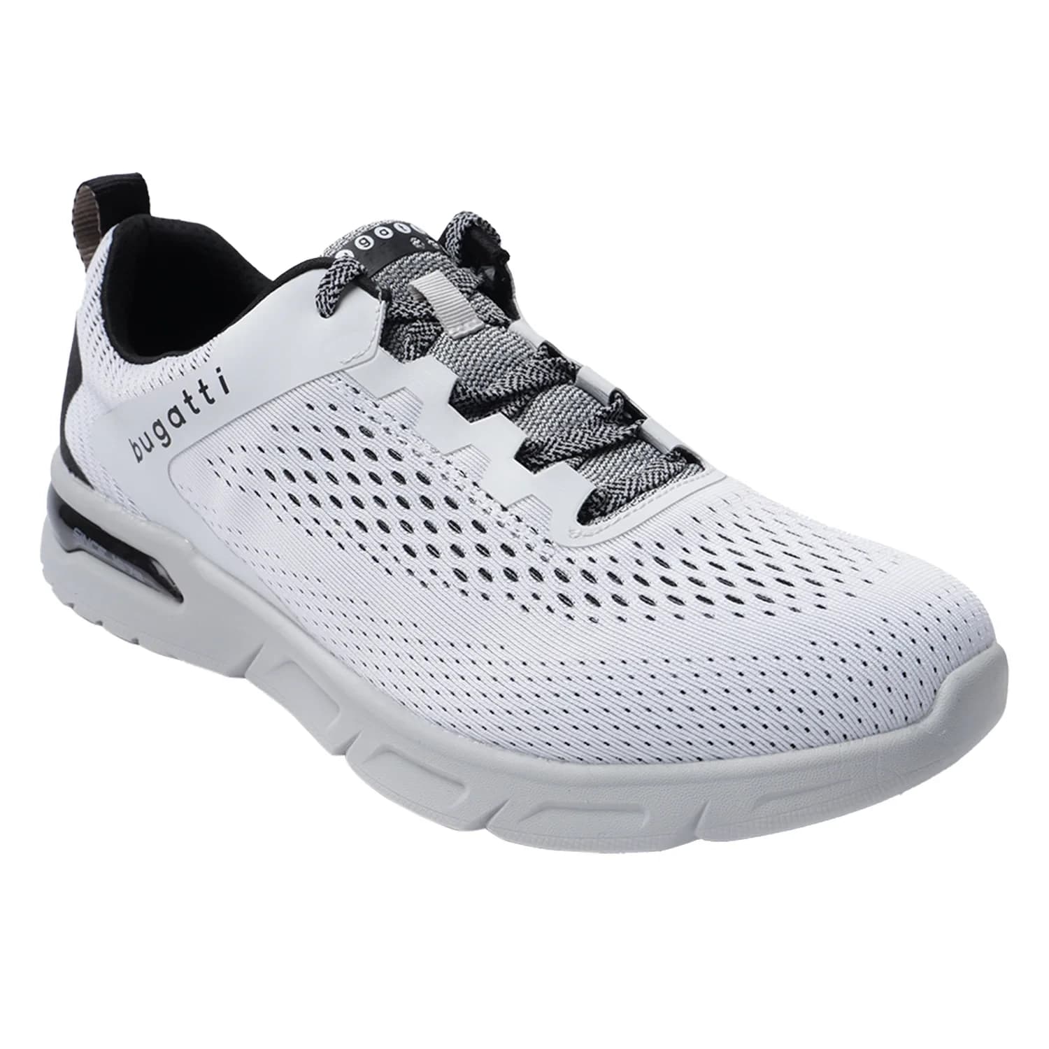 Stylish, modern, and ethically fashioned. bugatti Nubola white sneakers with vegan uppers. These wardrobe-versatile mid-tops feature Easy Change & Elastic Lace functionality for ease and convenience.