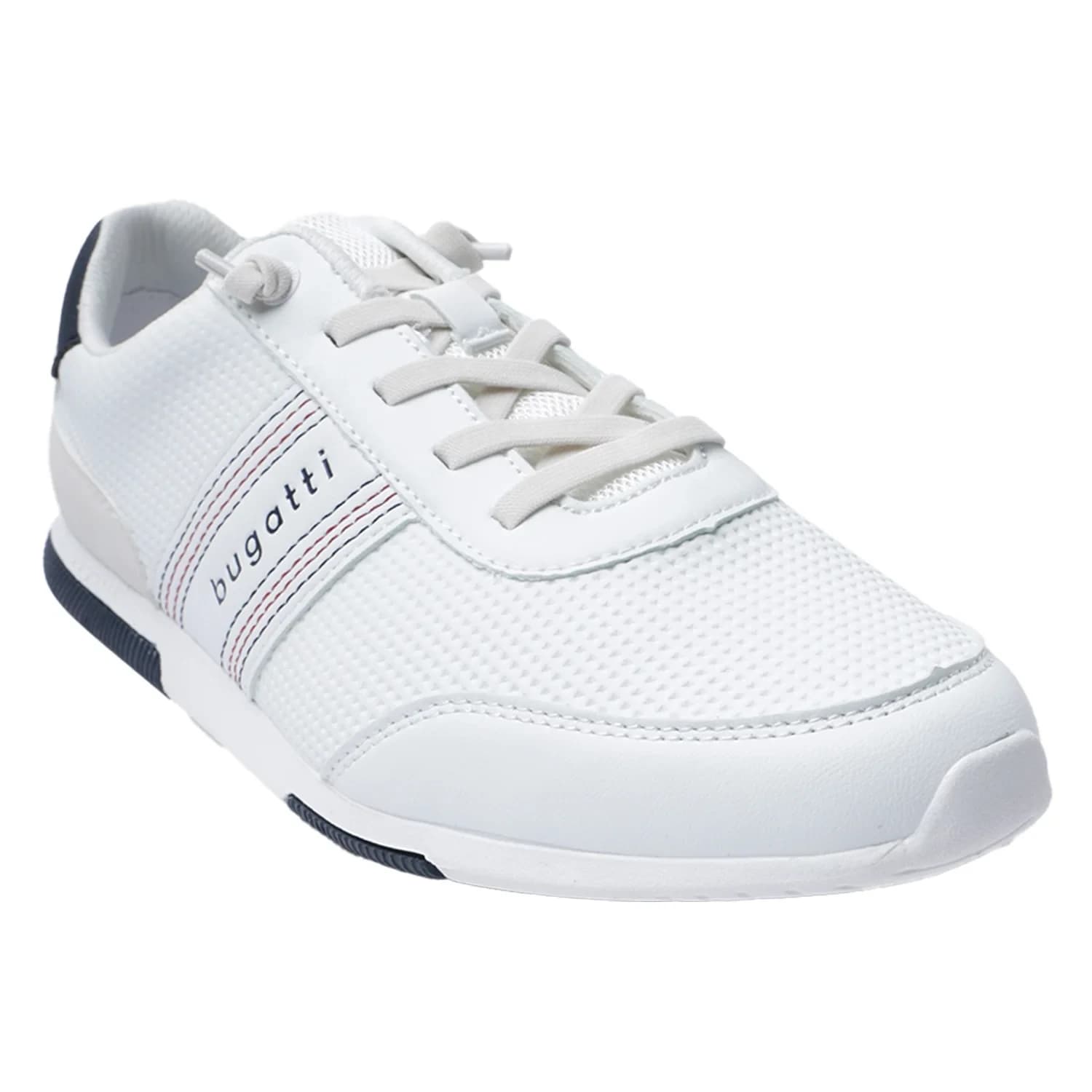 Utterly urban. Undeniably classic. bugatti Report ECO white and light grey sneakers. Made with synthetic uppers that sit atop TPR outsoles. A versatile style for work and weekends.