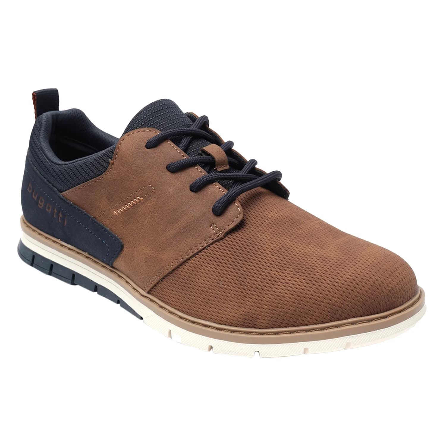 A shoe for the urban jungle. bugatti Sandman cognac and dark blue sneakers. Comes with a fashionable contra-colour patch on the heels, complemented by matching laces. The latest from Europe.