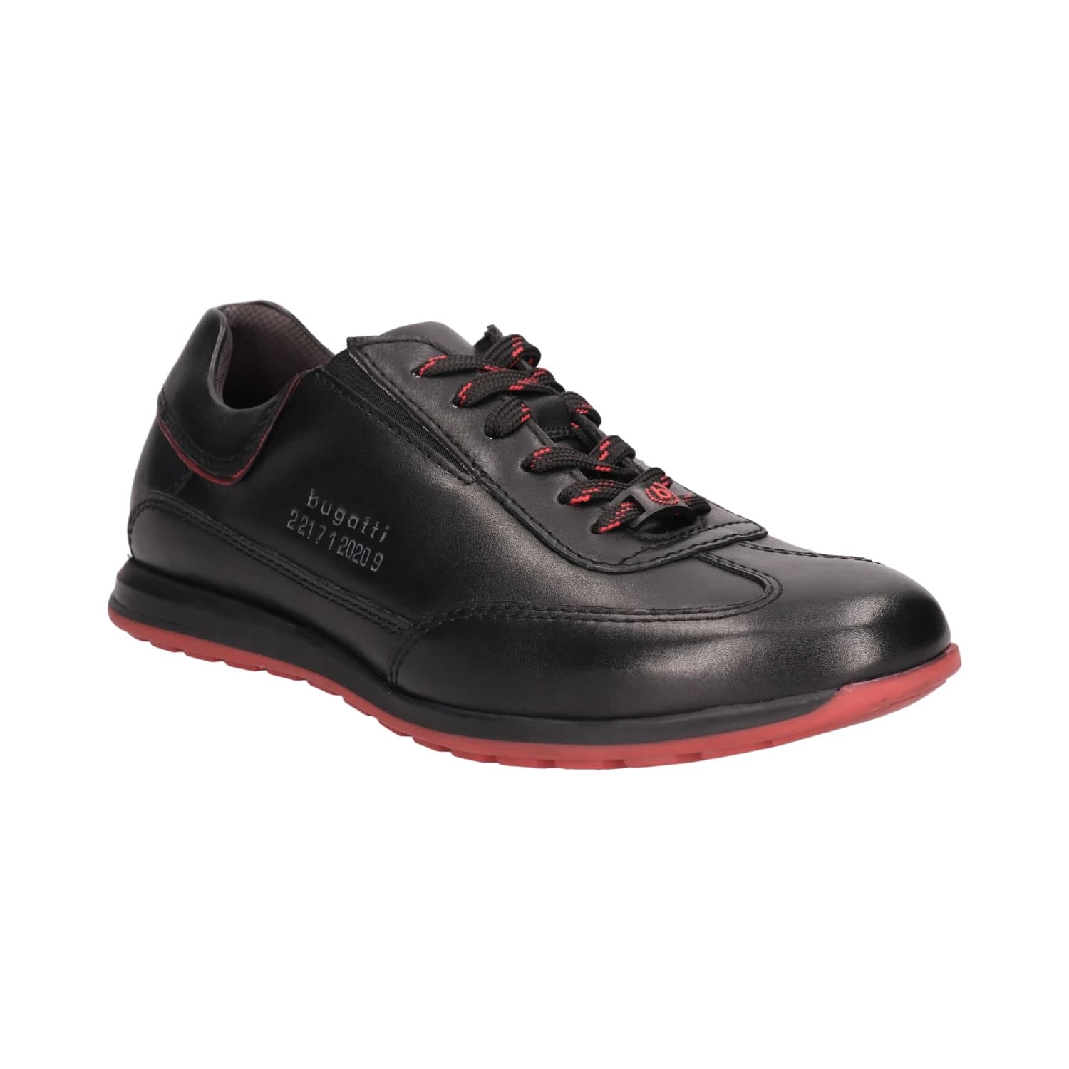 Adventurous spirit meets everyday wearability in bugatti Thorello black leather sneakers. Features Soft Fit insoles for enhanced comfort and bugatti logo on the sides, adding to its appeal.